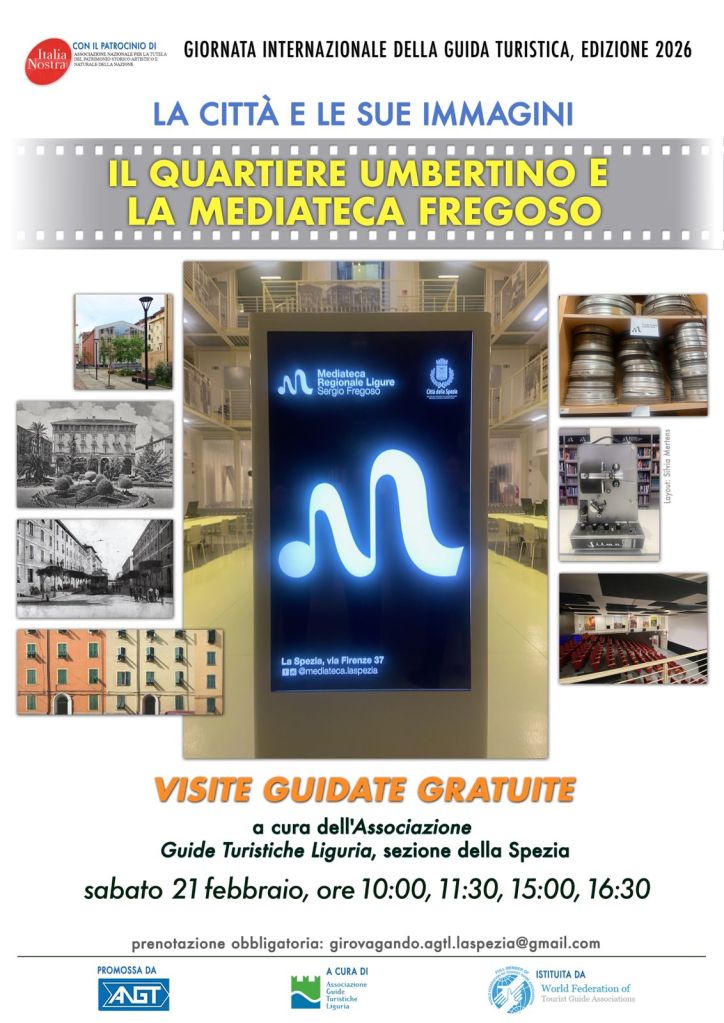 Liguria Per gli eventi durante la Giornata Internazionale della Guida Turistica 2026 in Liguria consulta le locandine. Genova – 22 Febbraio La Spezia – 21 Febbraio Ventimiglia (IM) – 22 Febbraio Condividi: Condividi su X (Si apre in una nuova finestra) X Condividi su Facebook (Si apre in una nuova finestra) Facebook Mi piace Caricamento...